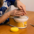 Transform your living room, kitchen table or any other space into a pottery studio with our miniature portable wheel. We've shrunk the throwing experience without compromising on quality or usability.